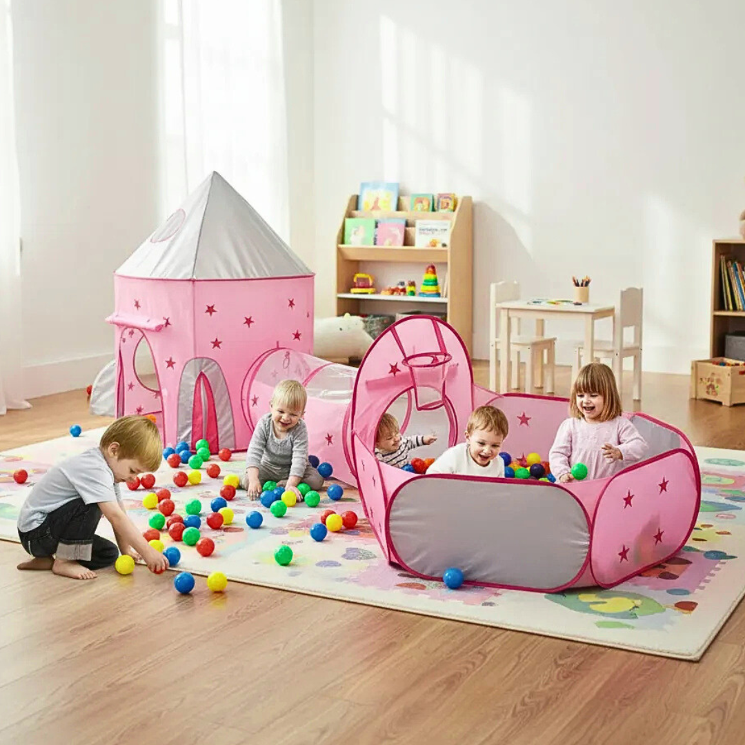 Convierte la habitación en un lugar lleno de risas y aventuras 🤩. Con su túnel y piscina de pelotas, los niños se sentirán en su propio parque sin salir de casa. ¡Diversión segura, sana y sin pantallas! 📵