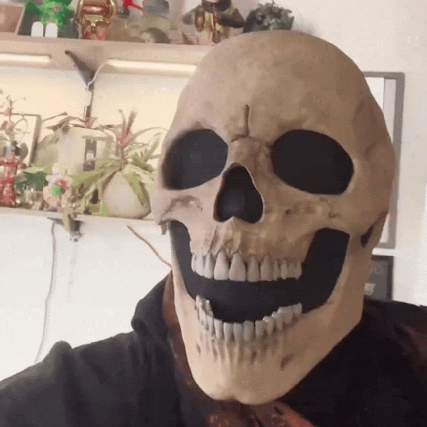 Con esta máscara no llevarás un accesorio mas, llevarás un imán de miradas. El realismo extremo y la mandíbula móvil te convertirán en el disfraz más comentado de la noche.